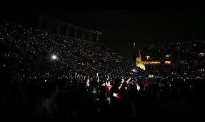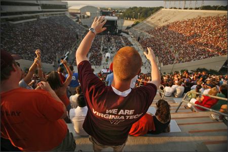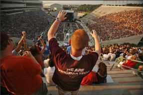 | Anyway, the concert was a good time and they did a great job of making a football venue into a passable music venue. In fact, here's the time-lapse video of the setup/takedown from hokiesports.com. | ![]() |