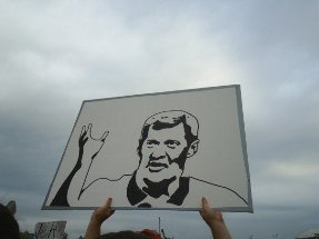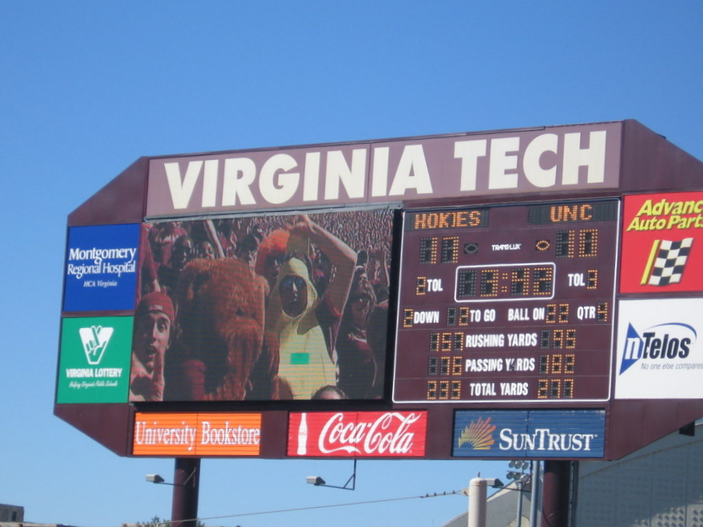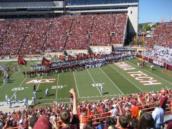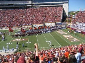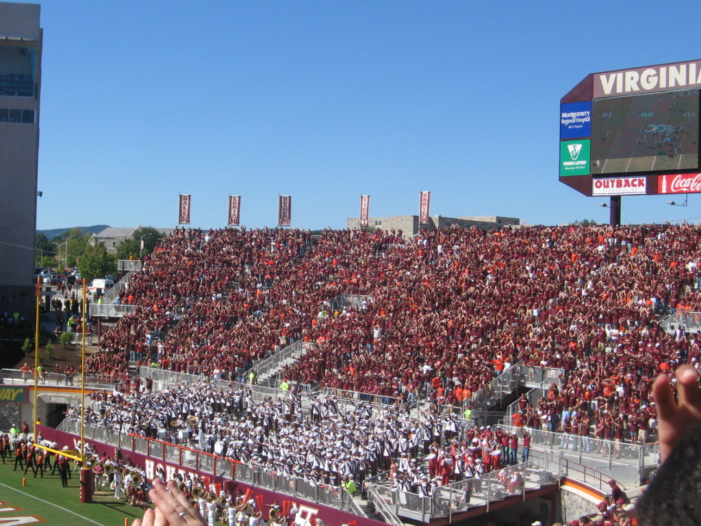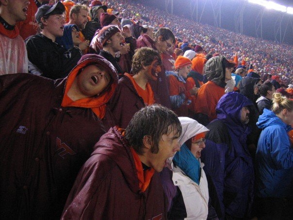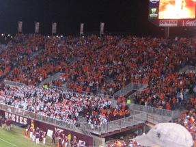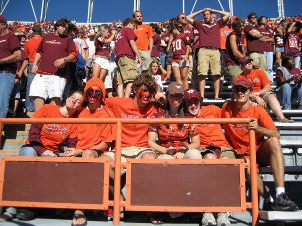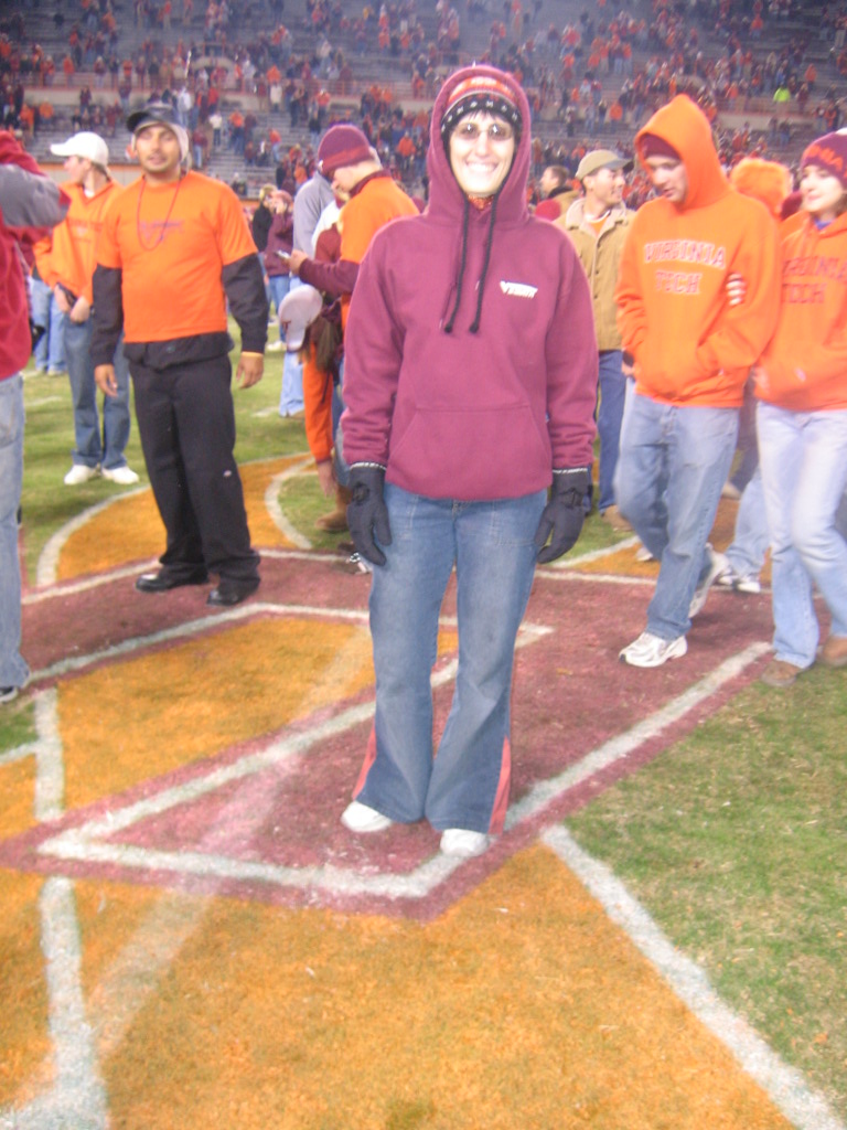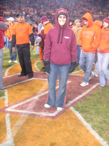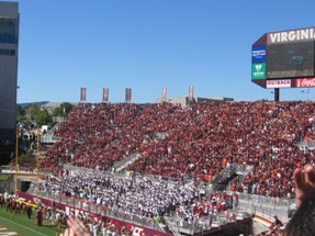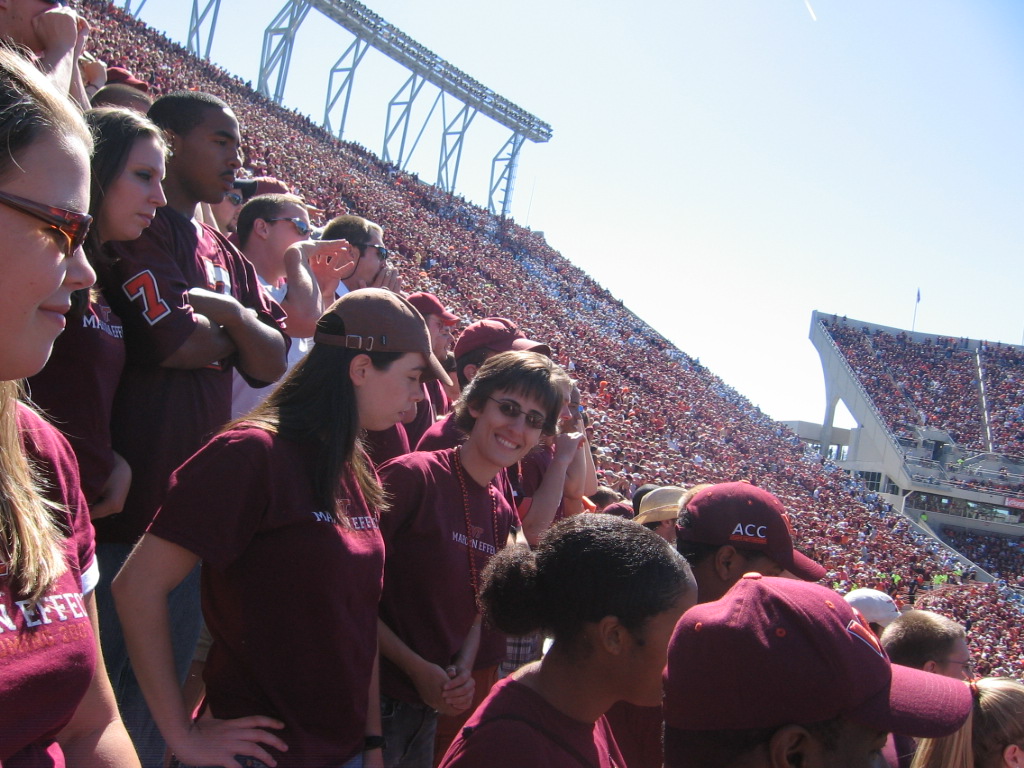 This game was important because it was our first major school event in the semester after the shootings. ESPN decided to send the College Gameday crew here (which is kind of a big deal) to cover the relatively minor game as a show of support. There were lots of tributes, and I didn't get pictures. I did, however, manage to steal a picture of David's awesome sign he made. Get it? It's VT Football Coach Frank Beamer. |