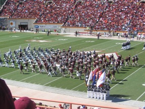 | Now back to your regularly scheduled coverage of the Highty Tighties (in blue) doing the pregame show with help from band alumni (in maroon). | ![]() |