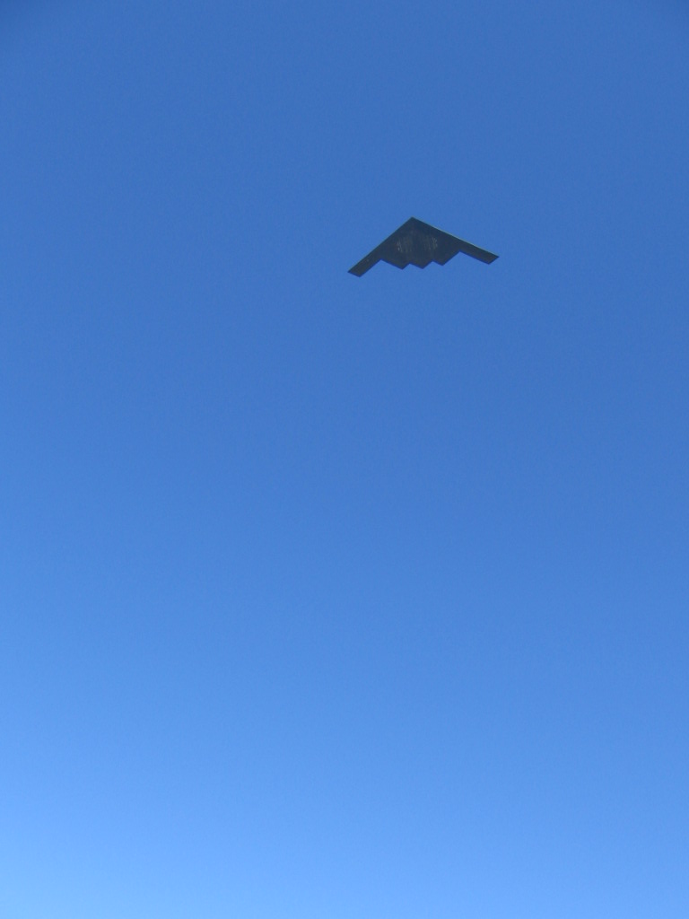 | But before that: let's have a stealth bomber fly over... because our military just isn't spending enough money already. | ![]() |