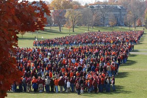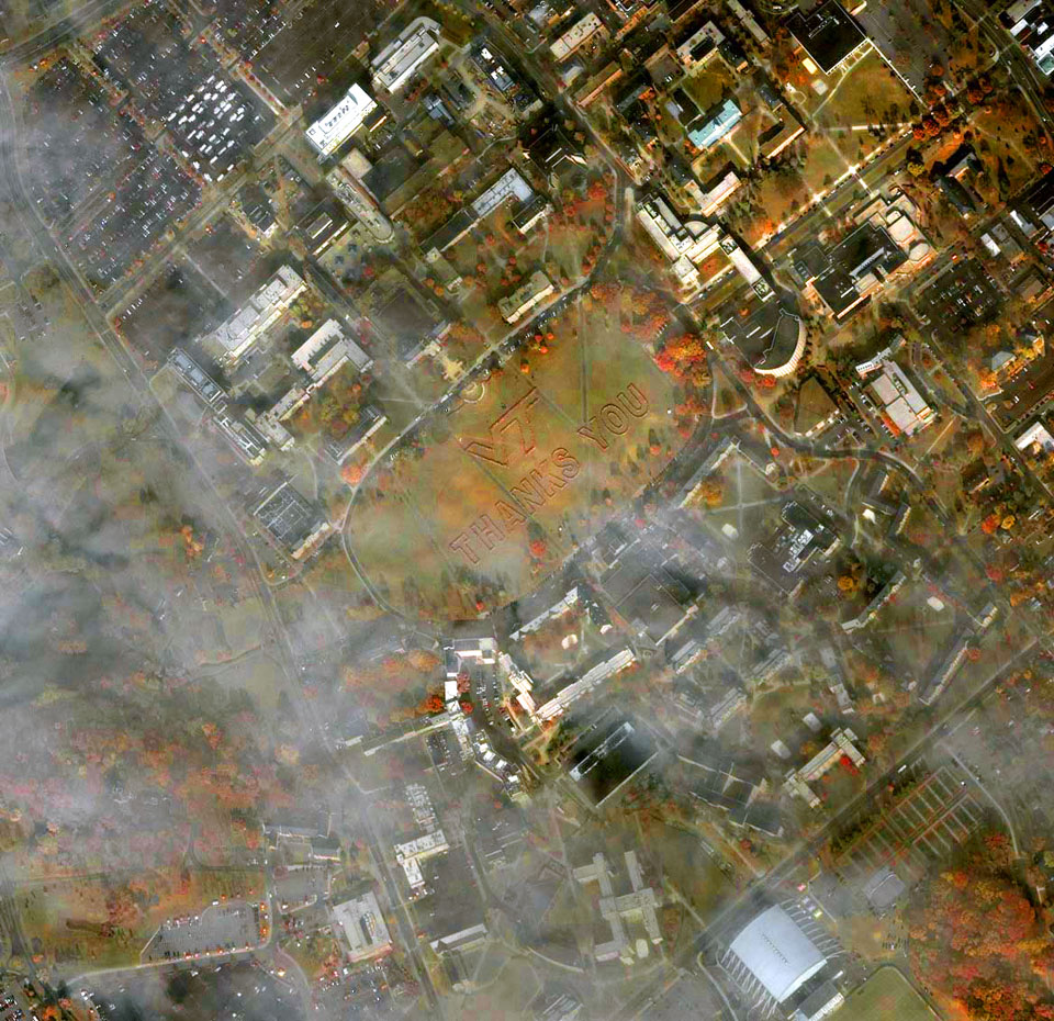 Ahh, it's the Hokies Thank the World event. The Geography department and the GIS people in my department decided to get a bunch of people to stand around while a sattelite flew overhead and took a picture. | |