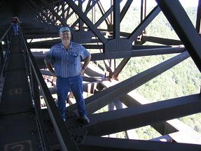 Now this is one of our tour guides. I think I can sum it up by saying that you don't have to be crazy to work for the West Virginia highway department, but it helps. Please bear in mind, though, he never walked more than about 5 feet away from the walkway.