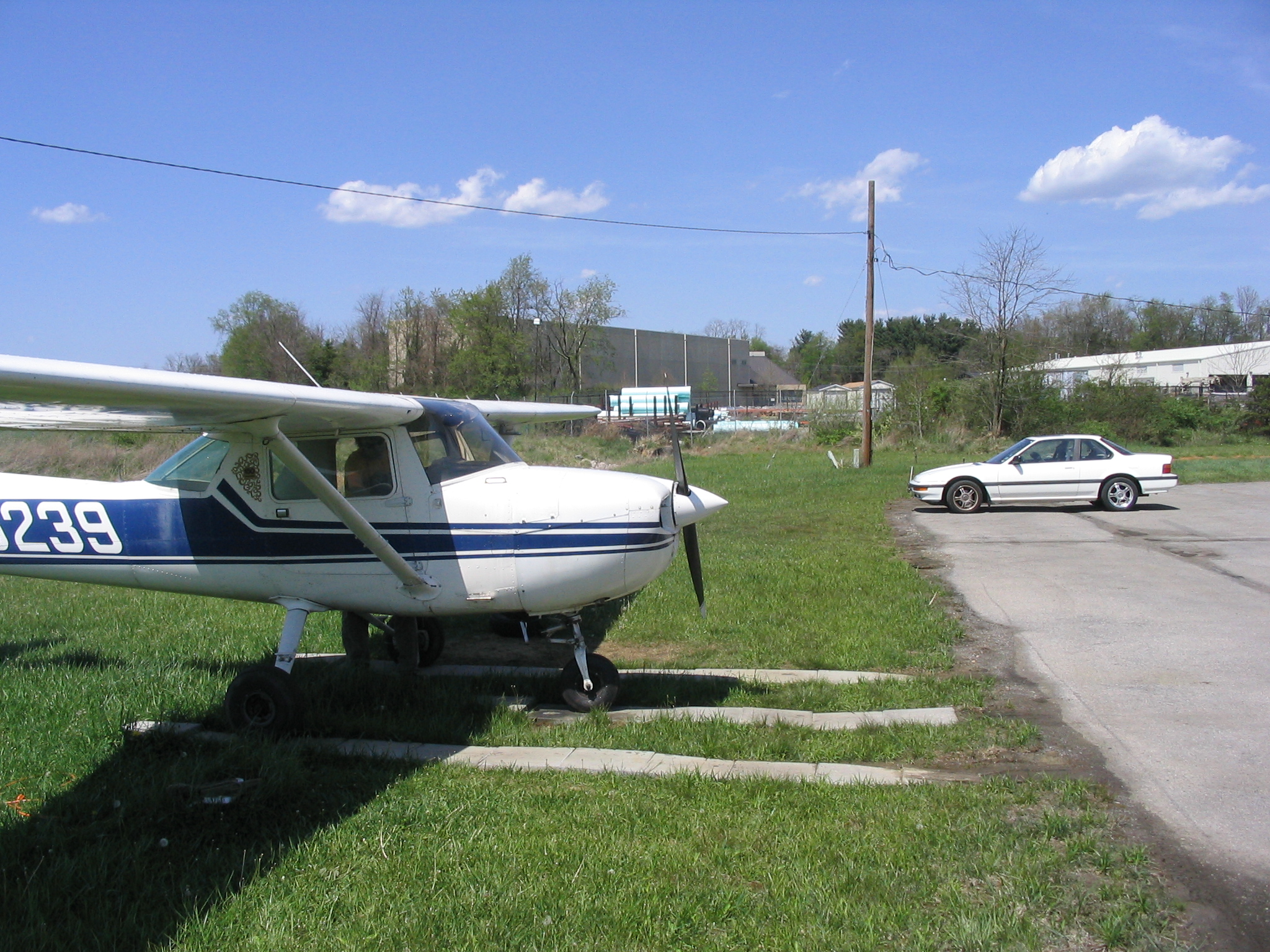What better way to spend a Monday with no math class then by going flying with your trusty former RA, Brad? Here, Brad works on the pre-flight checks on one of the Hokie Flying Club's planes, as his car sits nearby.