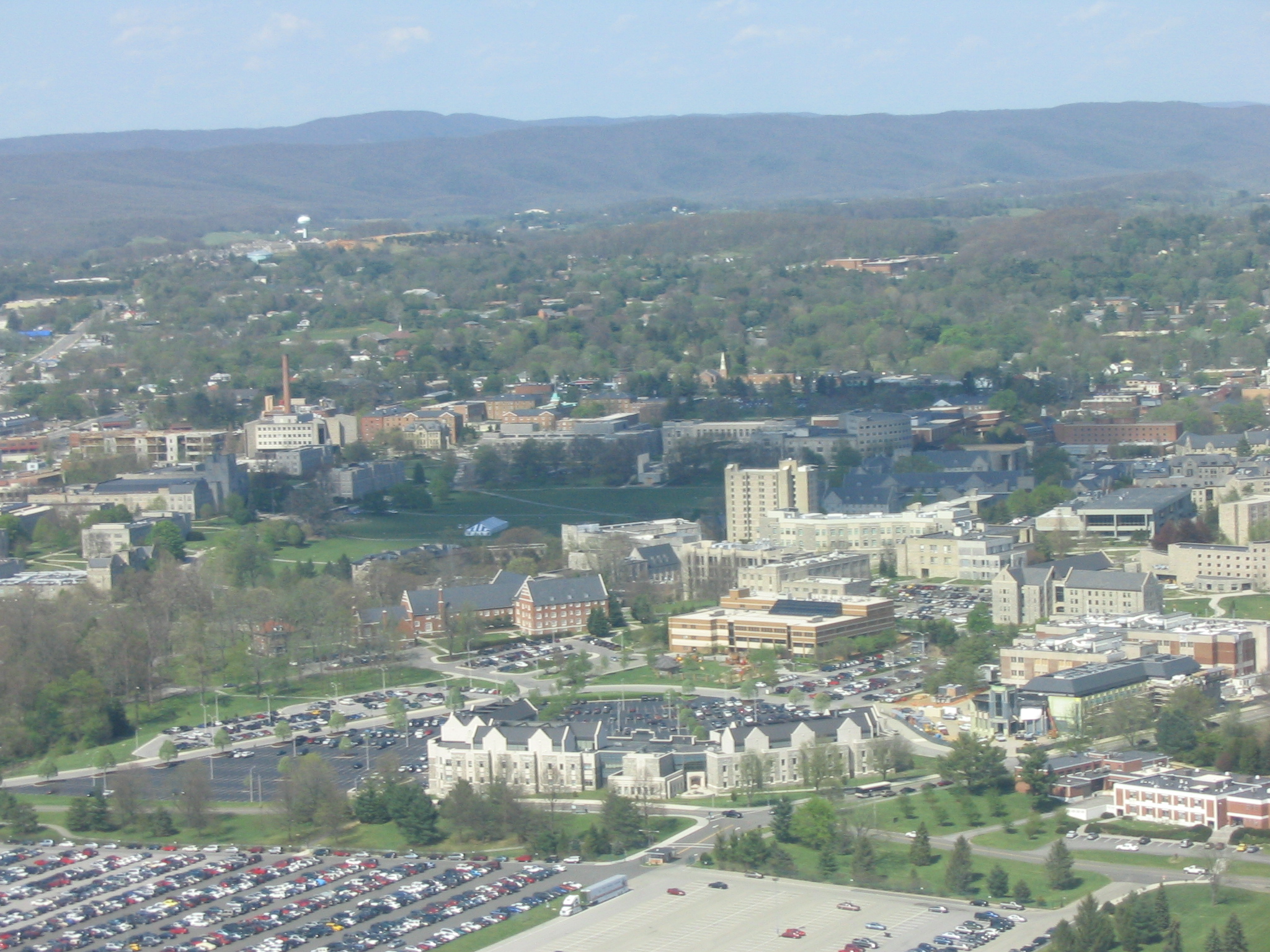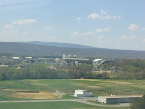 Here's the view to the right out of the window, with Lane Stadium and the campus stretching out behind it.