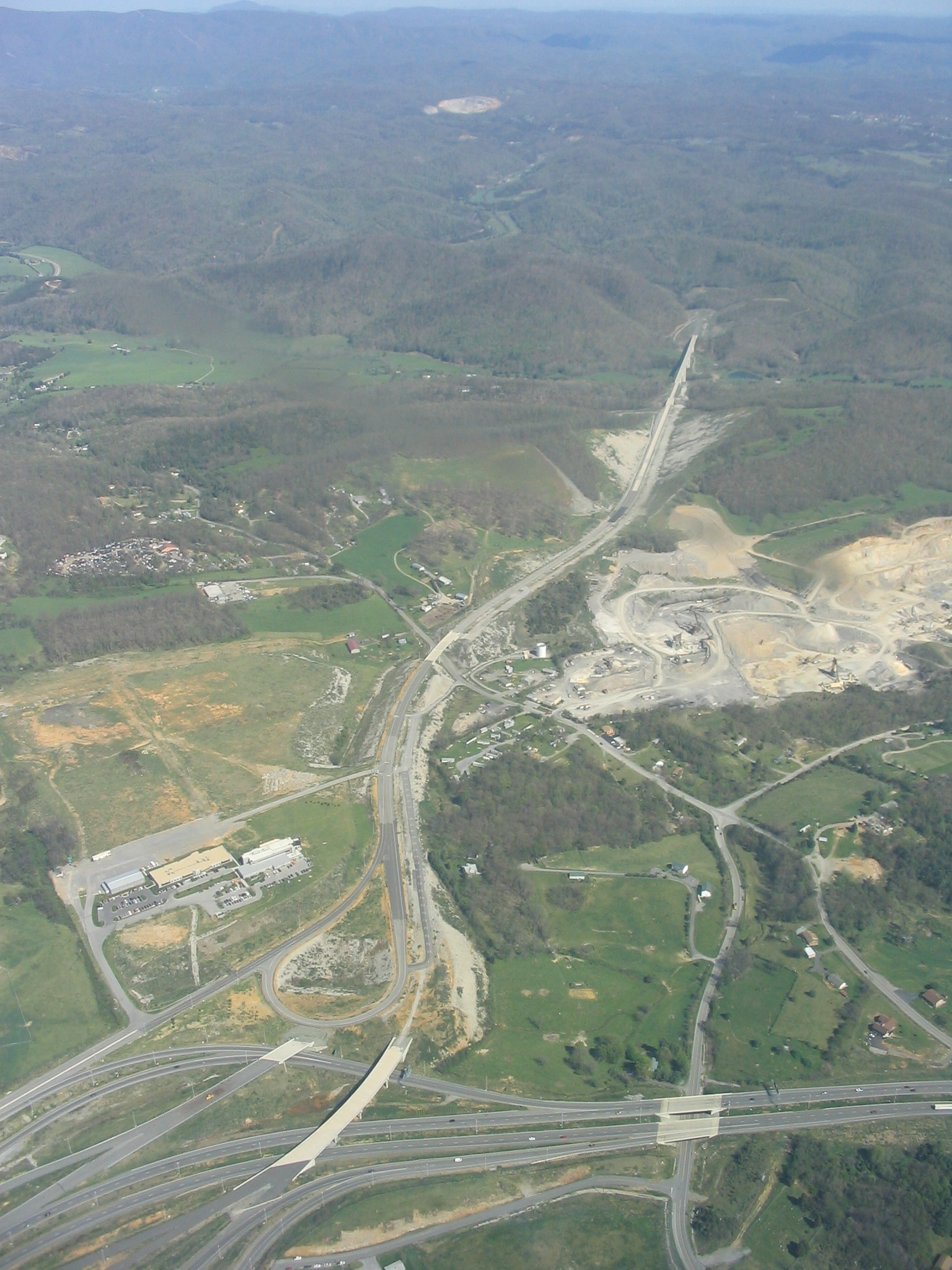 Here, we're approaching Christiansburg. Wal-Mart and the NRV Mall are off to the left, and you can see the majestic Smart Road Bridge off in the distance.