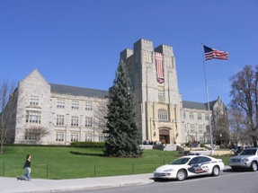 | This is Norris hall. Many people had congregated, silently, around it at the police tape. Even at 9pm, police officers still went in and out of the building. | ![]() |