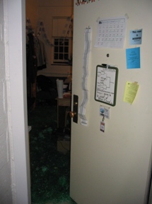 Mitch and Susan have been having a prank war with Jeremy. First they filled up his shower with newspapers. Then, he did something to them that they haven't yet found, but I'm quite sure that they're not going to be happy when they find out what it is. So anyway, to start off round two they went out to Wal-Mart and bought a bunch of Easter grass on sale. Over 100 packages, in fact. | |