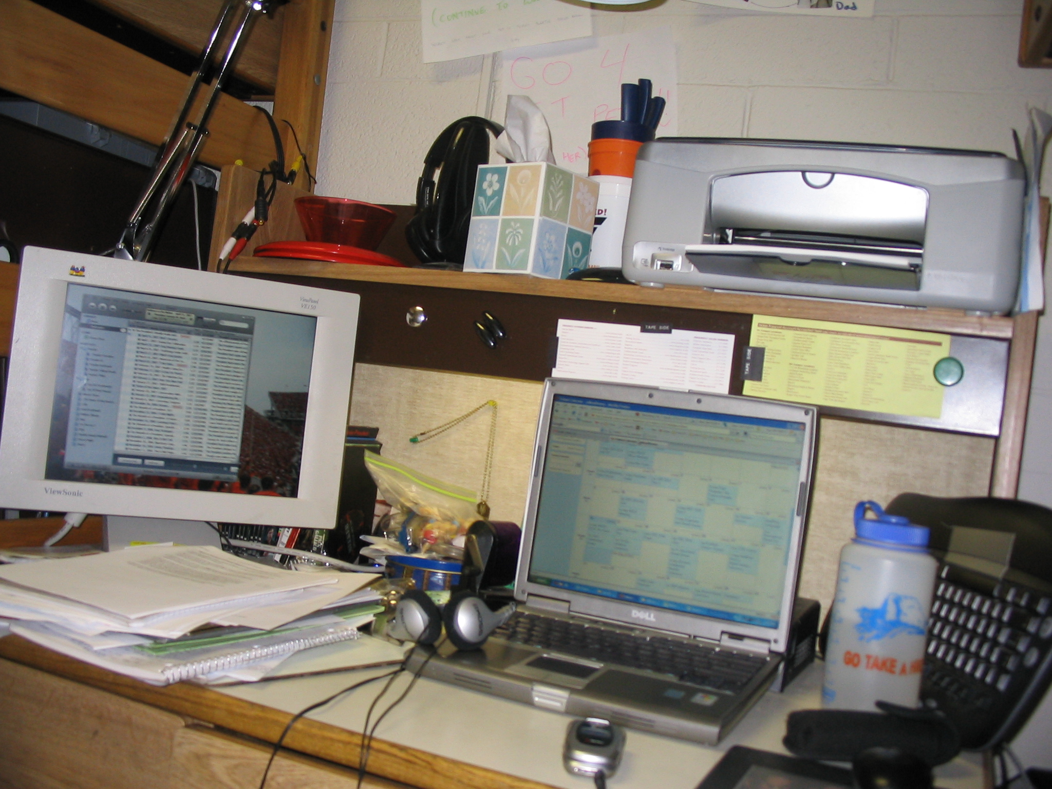 For the longest time I've been looking to get a second screen for my computer. I could only fit a flat panel there, so I've been looking for a flat panel. I said that the first time I could find one for uner $75 I'd take it. So at the April surplus auction, I finally found one. It is really great, and has made the coding for this site much easier. | |