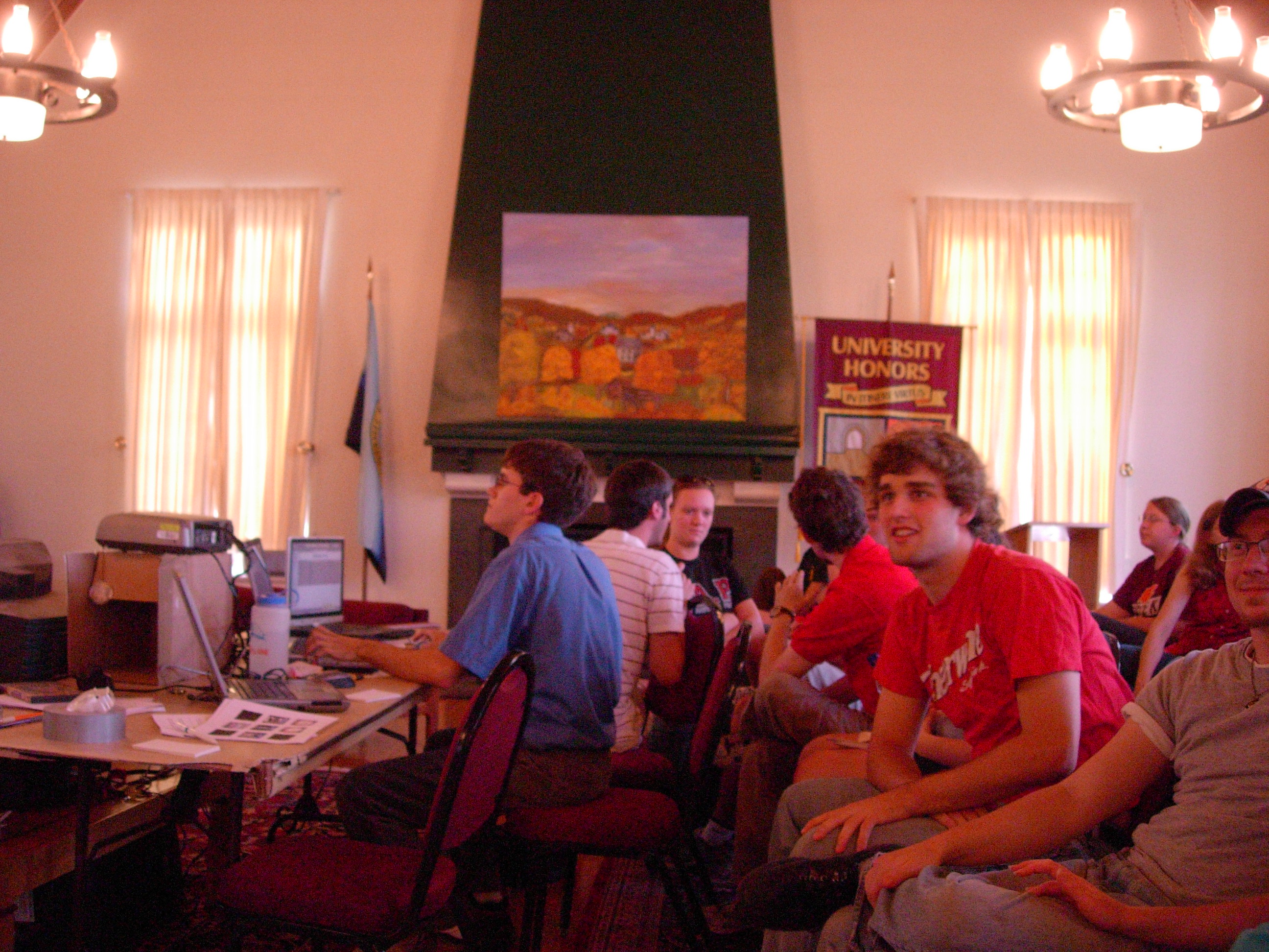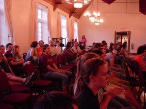 | The audience waits with bated breath... for something. If you look towards the end of this row, you can see Honors Director Jack Dudley along with some notable visitors. | ![]() |