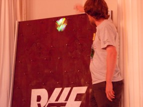 RHF couldn't find their chips, so we were forced to use blank CDs as Plinko chips. Here, in the video section, Collin does well on his first play, but not on his second. |