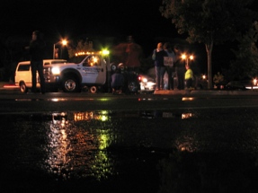 | Finally the tow trucks arrived. They were greeted by the assembled crowd of about 50 people with many cheers. | ![]() |