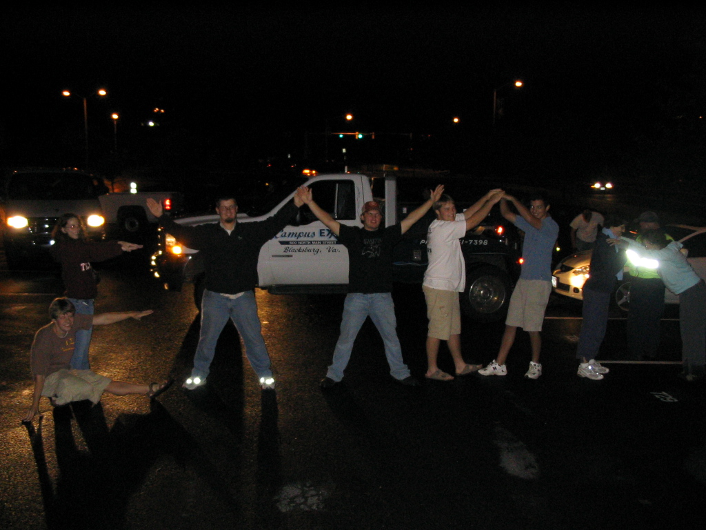 People had their picture taken with the driver and a group of especially motivated people spelled out "EXXON," the name of the tow truck company ("Campus EXXON" was a bit too long). | |