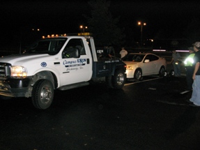 But one of the other perks of paying them insane amounts of money is a close parking space. And so on the evening before each home football game, Parking Services comes out to take care of the cars that students carelessly left in the various restricted lots. At 10:00, you are supposed to have your car out. Parking services gives you a ticket and calls your contact number to give you one last chance to move your car. At 11:00pm sharp, the tow trucks arrive. |