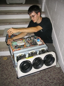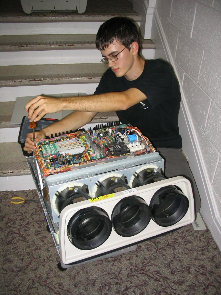 I had a projector, too. But it won't really turn on for some reason. So I got a bunch of electrical/computer engineers to look at it. Their verdict: "Don't mess around with it too much, because some of those things in there could kill you." | |