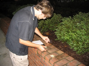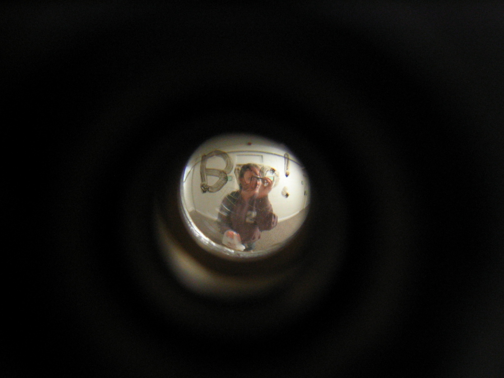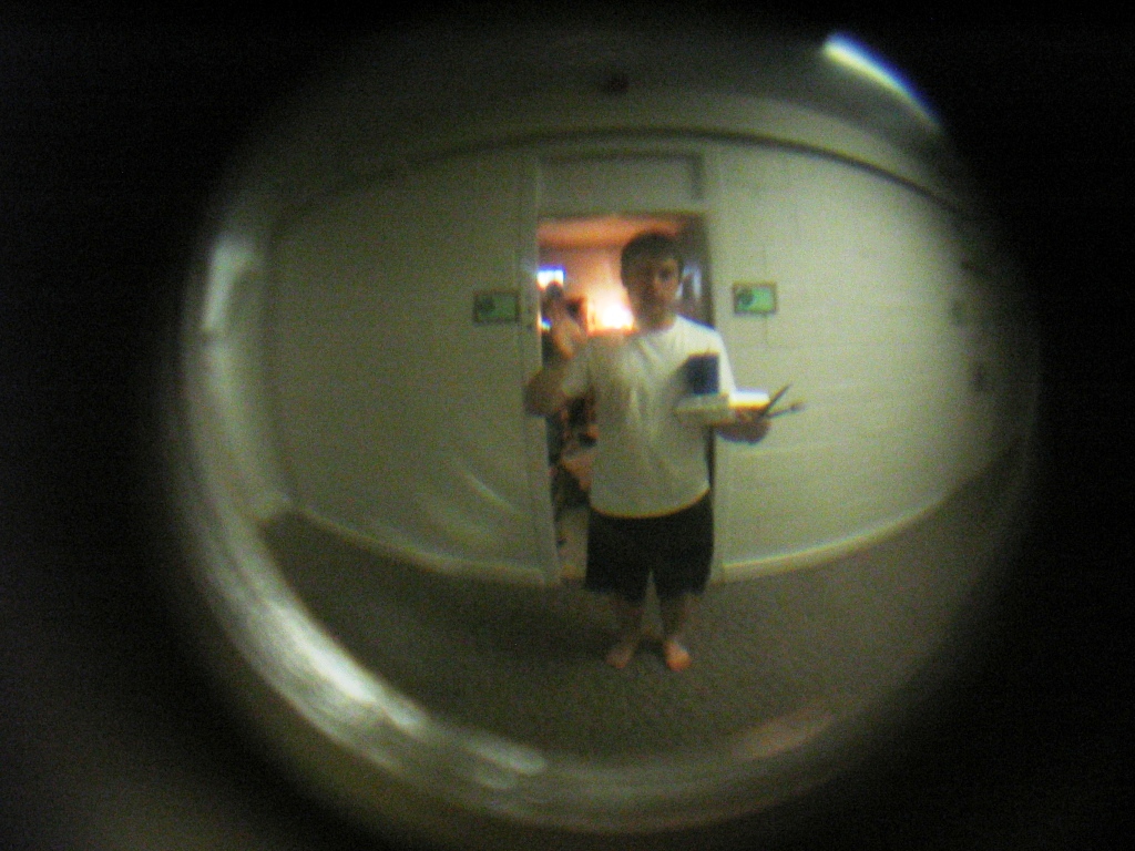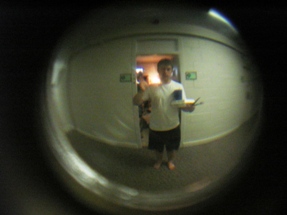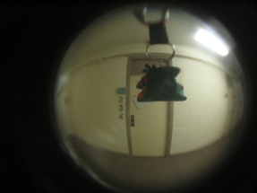 It's Kathleen, creating dry erase graffiti on our peephole.