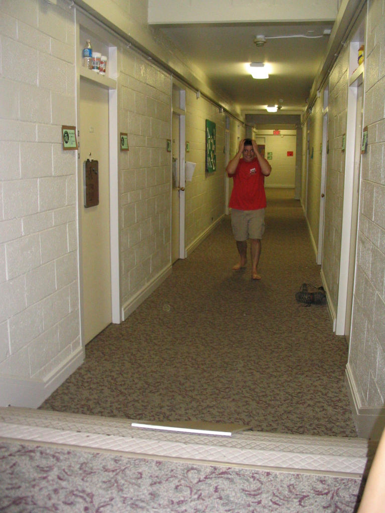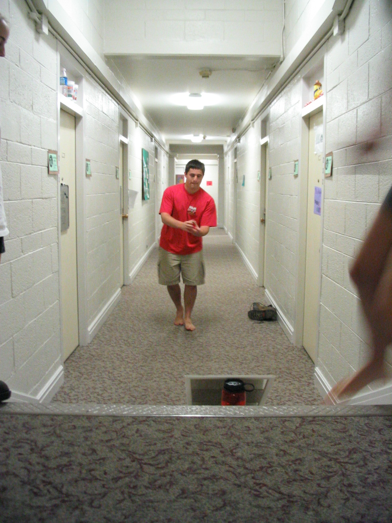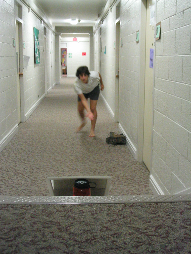 In an attempt to continue the glorious tradition of Hall Sports in Hillcrest, a number of 2.5nd floor residents engaged in a lively game of tape bowling.