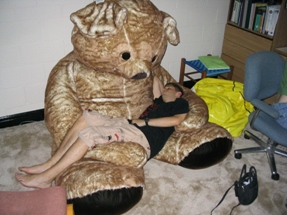 Holy crap, that's an enormous teddy bear. Look, it's Alejandro Bear (he's very soft) and my roommate fast asleep.