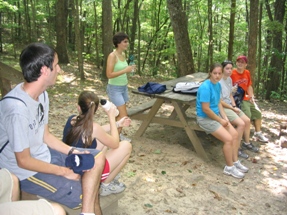 That would be minutes of resting to prevent lactic acid buildup in your legs. Here Brad, our fearless leader/Undergraduate Hall Director, makes sure we aren't ambushed by pirate-ninjas while resting.
