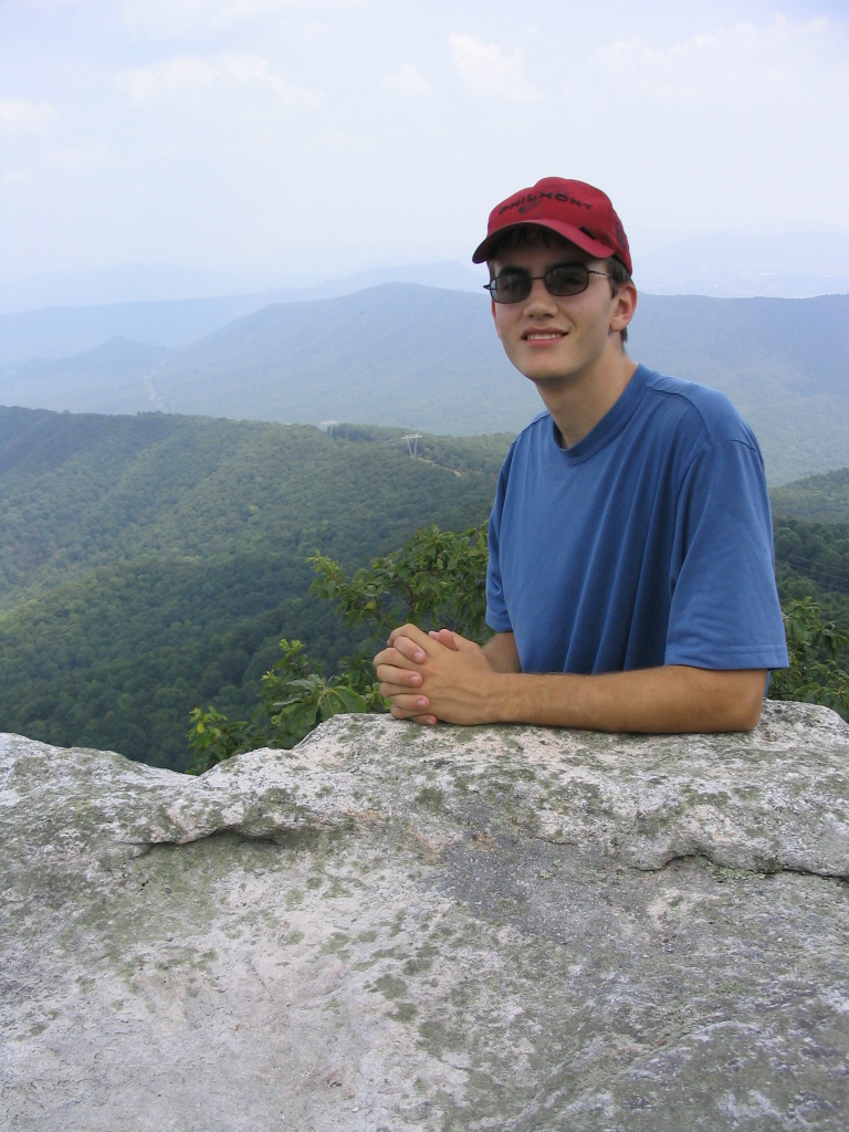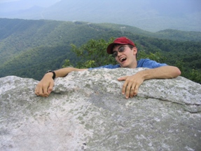 OHNOWATCHOUT! No, seriously, there's a foot-wide ledge about 3 feet below the brink here, so I'm only in mild danger. Plus, if I fell its only about a 30 foot drop down into some prickly looking bushes.
