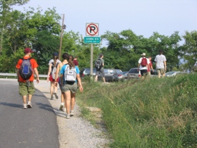 Some of the 15 people embark on the epic journey to McAfee's Knob.