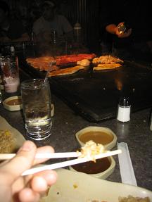 | Look at that food cook! Unfortunately, I didn't get a picture of any of the showmanship of our chef. I'm working on getting some of the videos of him stabbing himself with a knife (unintentionally) or creating a flaming onion volcano (this one was intentional). [You know who you are... hint, hint!] | ||