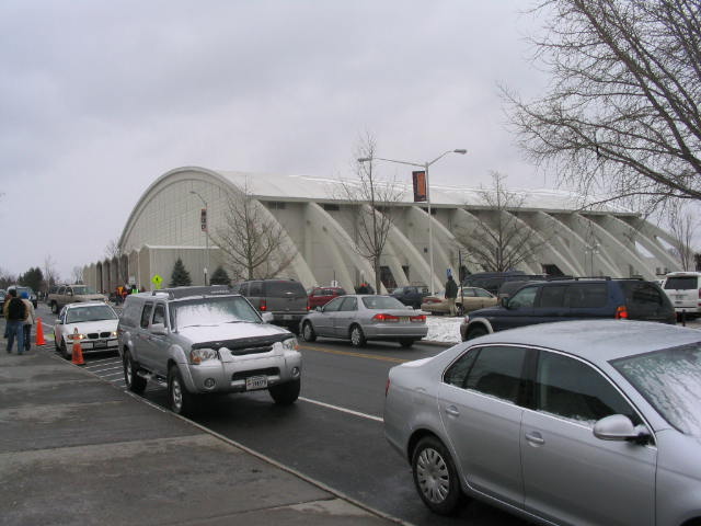 | Yeah, so I stood around for about 2 hours, we lost, oh well. Basketball at Tech obviously doesn't have quite the established traditions of football. But we're getting better, and they're working on it. Just check out the orange-ness of the student section (the left side). | ||