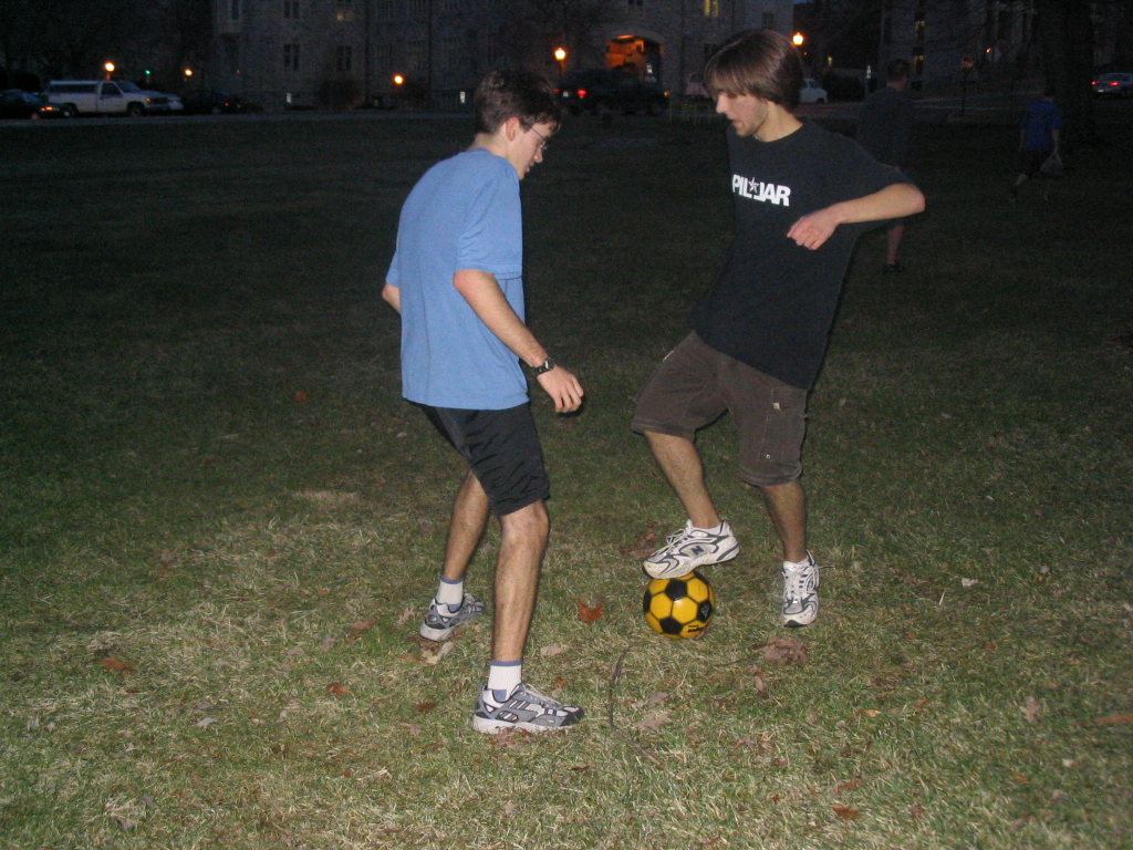 | For a substantial number of consecutive Fridays, the weather was ridiculously nice in Blacksburg. So naturally, a whole crowd of Hillcrustaceans took advantage of this to engage in friendly compeition. Both regular and American football were played. | ||