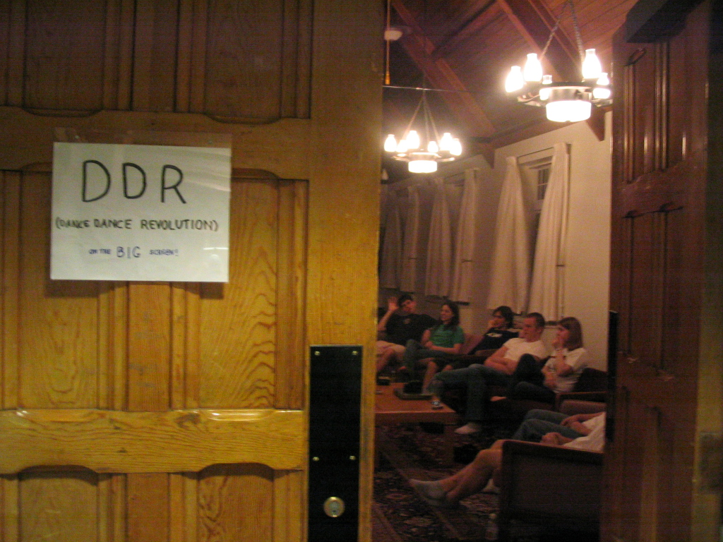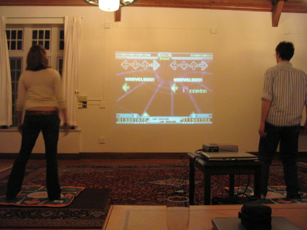 | This is no ordinary DDR... this is big screen, 1000+ songs availible, played from an open-source program, haul in the couches and make it a big social event DDR. Check out a video of good people playing. |