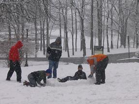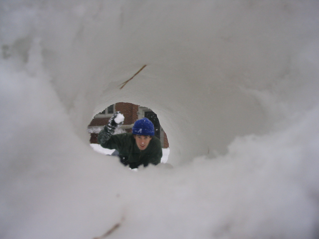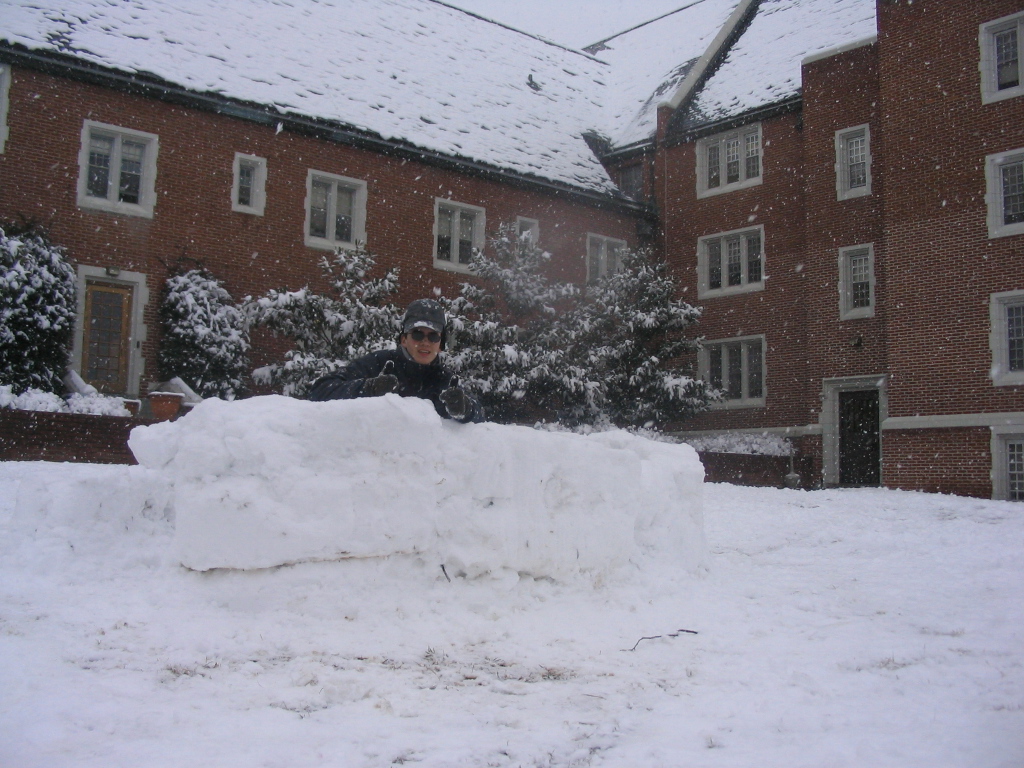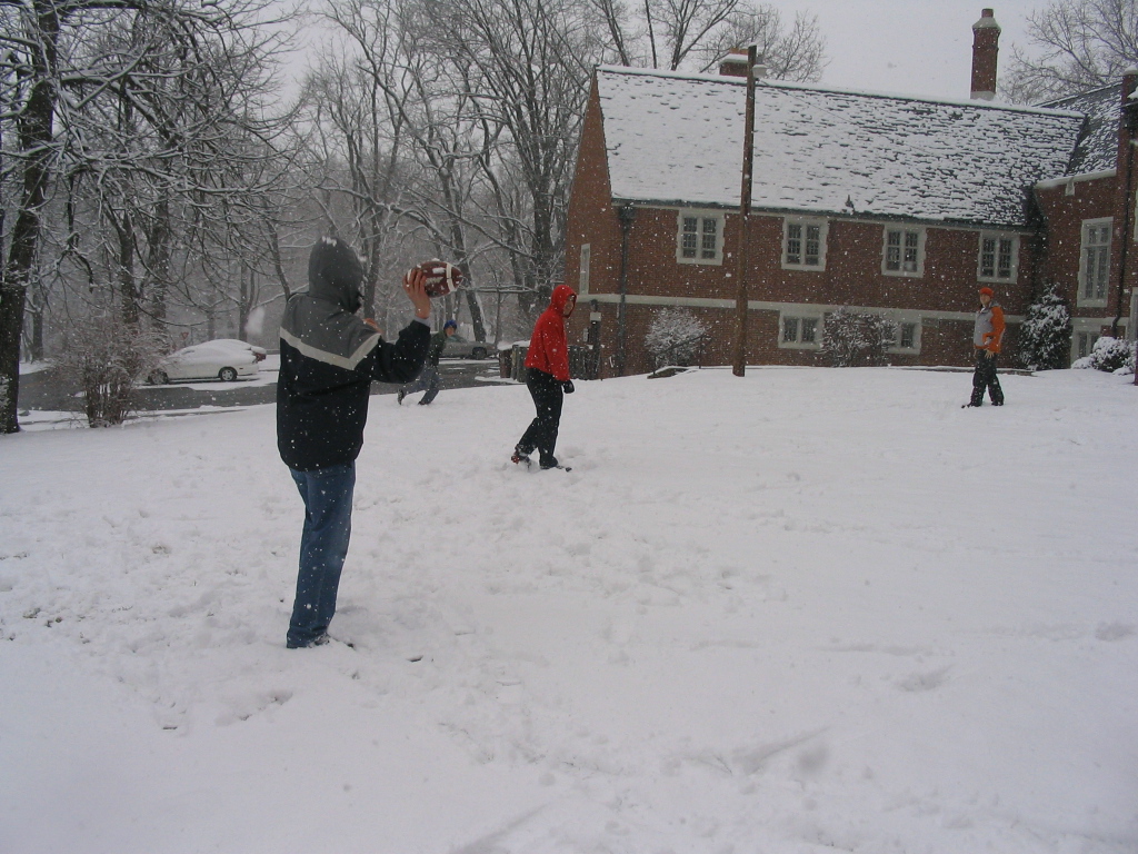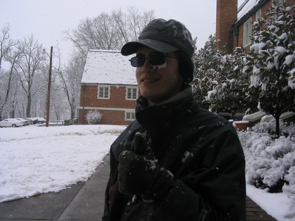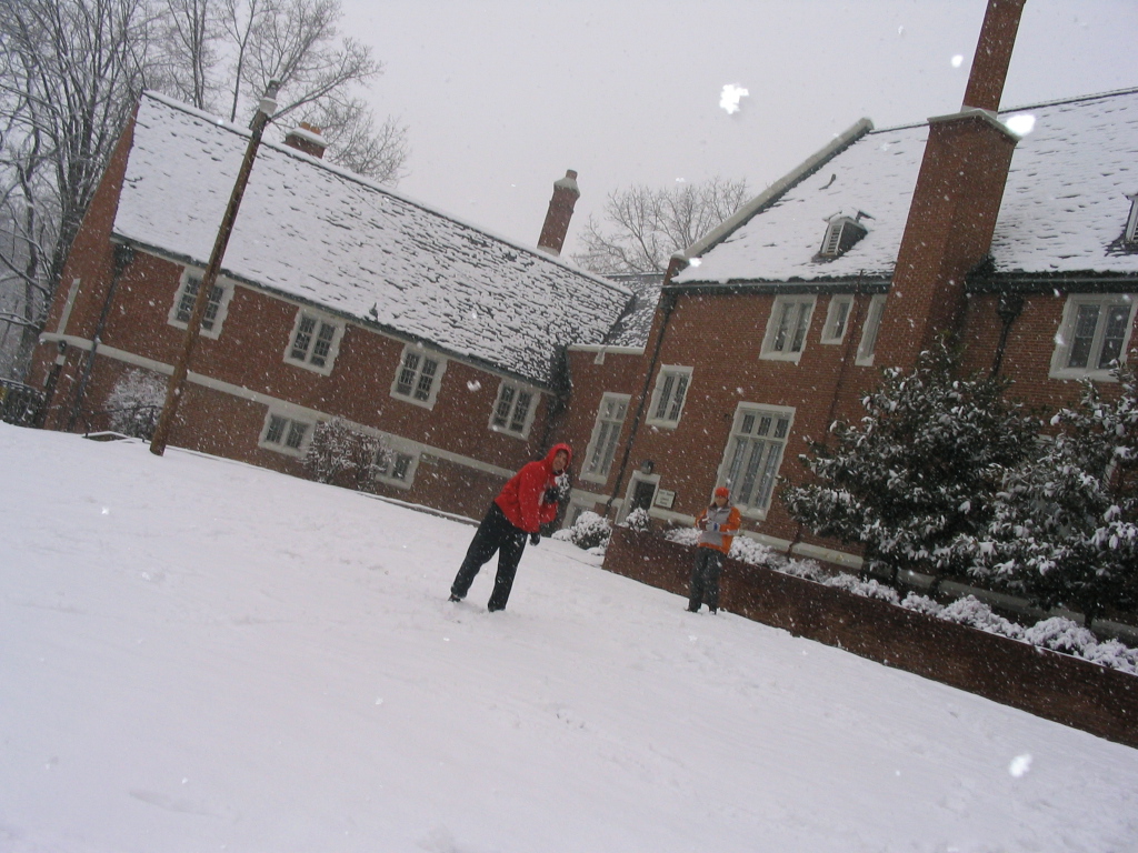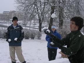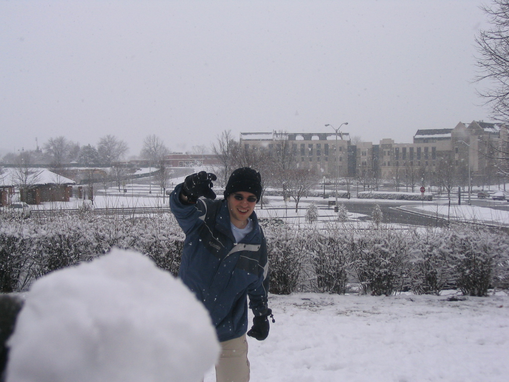 | And here's my future roommate, Will, throwing a snowball at me. And that's definitely not my thumb in the lower left corner holding the snowball at arm's length. | ||