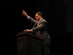 And making points. Afterwards, he got about 20 different awards from various organizations and then proceeded to do an "altar call" of sorts for voting registration. Yeah... it was the Neverending Program. |