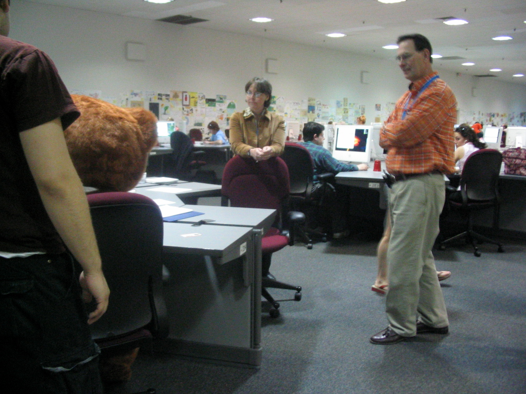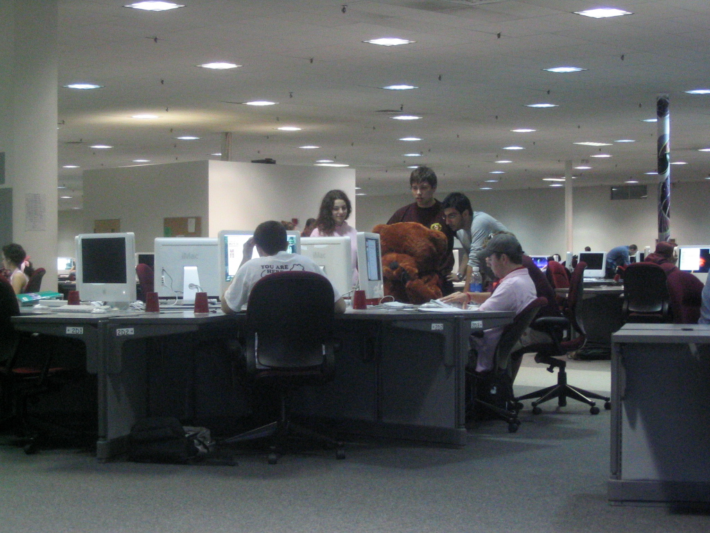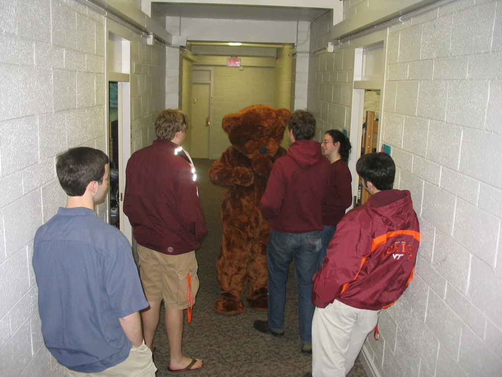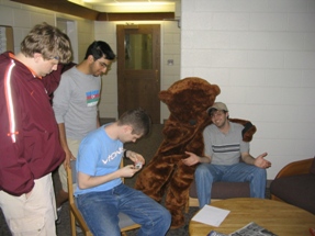 | Here, Bear (a math education major) gets help from interior design, animal science, and physics majors, respectively. I (civil engineering) was taking pictures. Far more important, don't you agree? | |