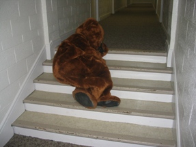 So eventually Bear finished his quiz (he aced it, of course), and it was time for all of us to go home. Bear needed some help on the steps. The bus driver asked him if he was pledging for a fraternity or something. Bear told him, "No. I'm a freaking bear. There are no fraternities for bears... yet." | |