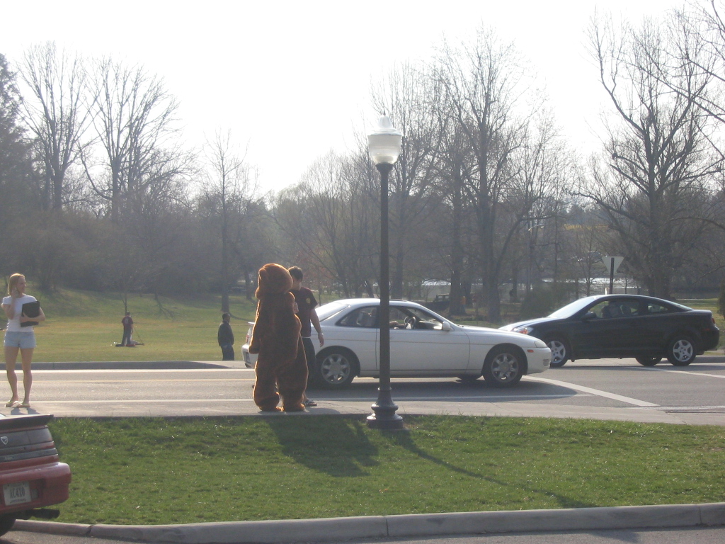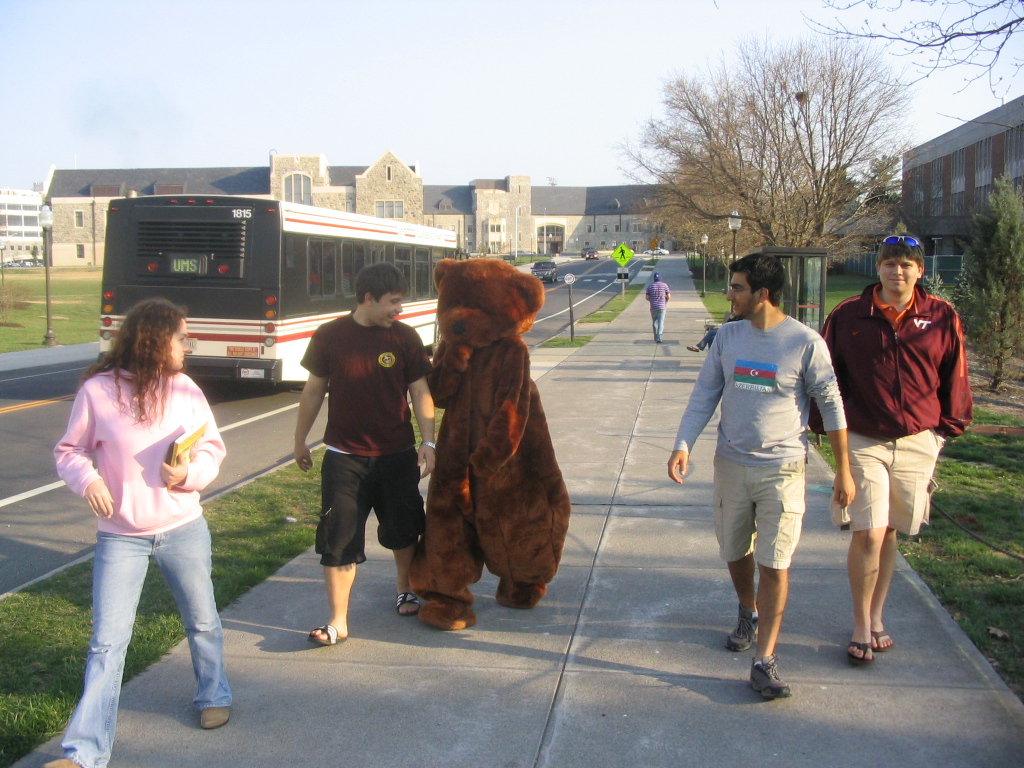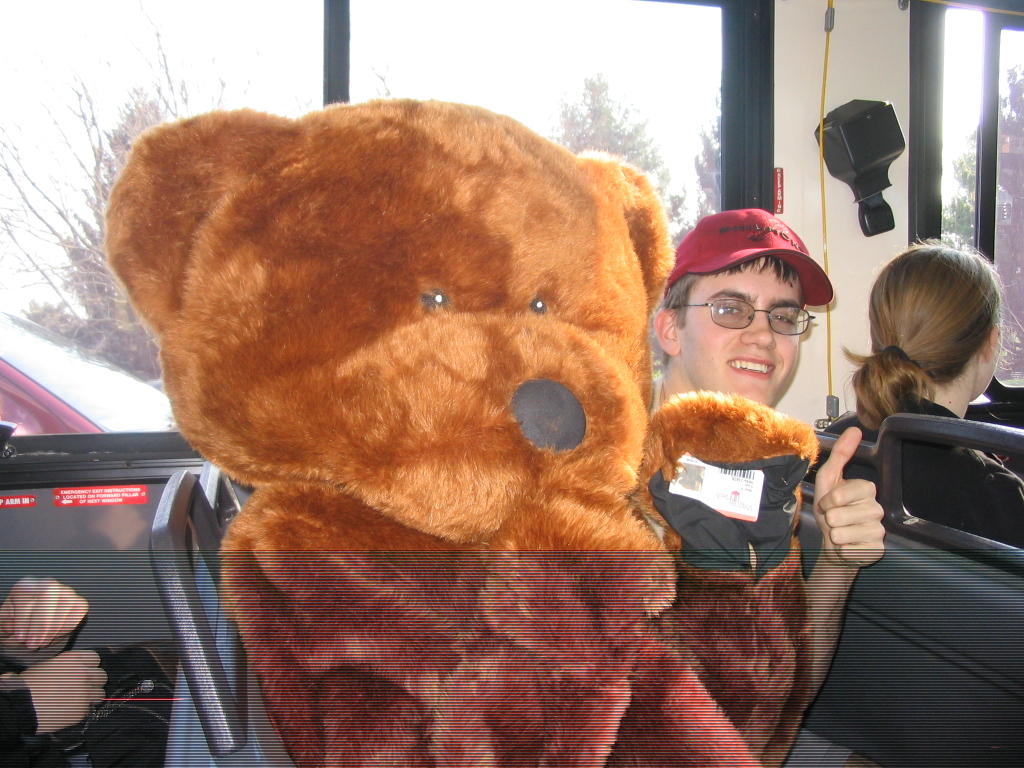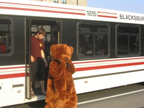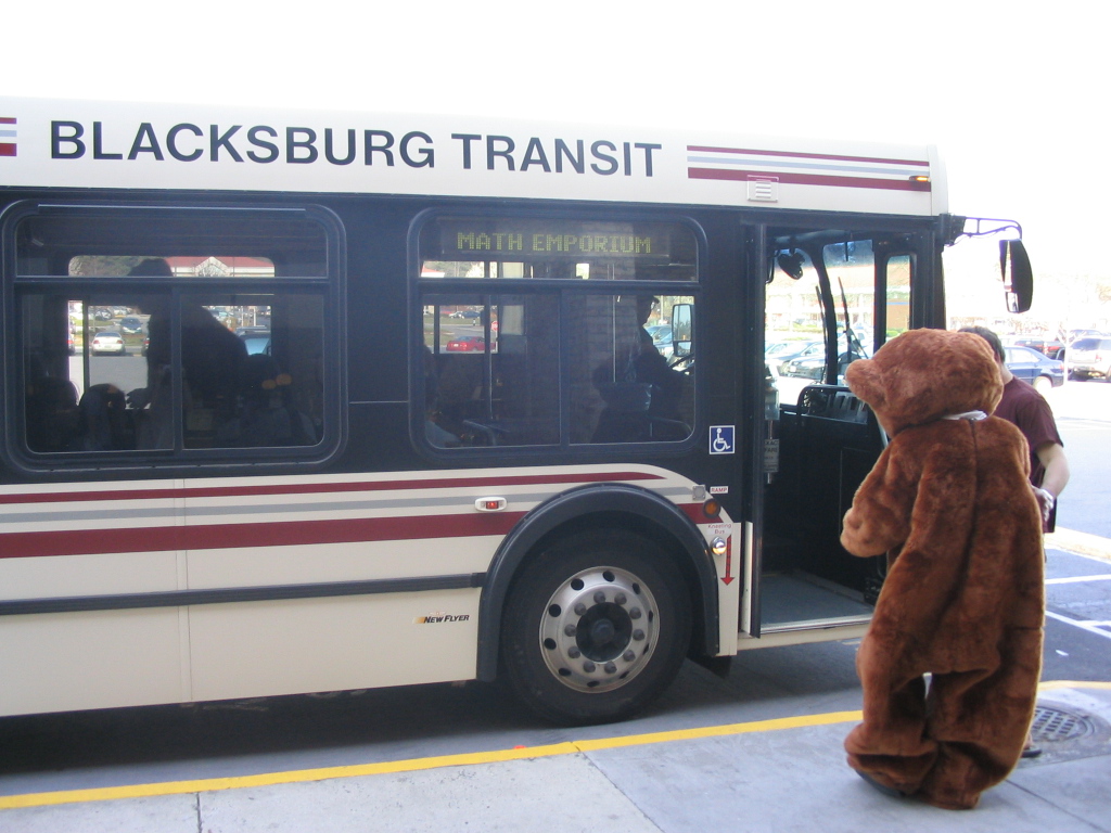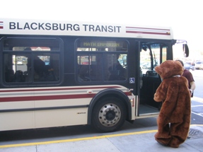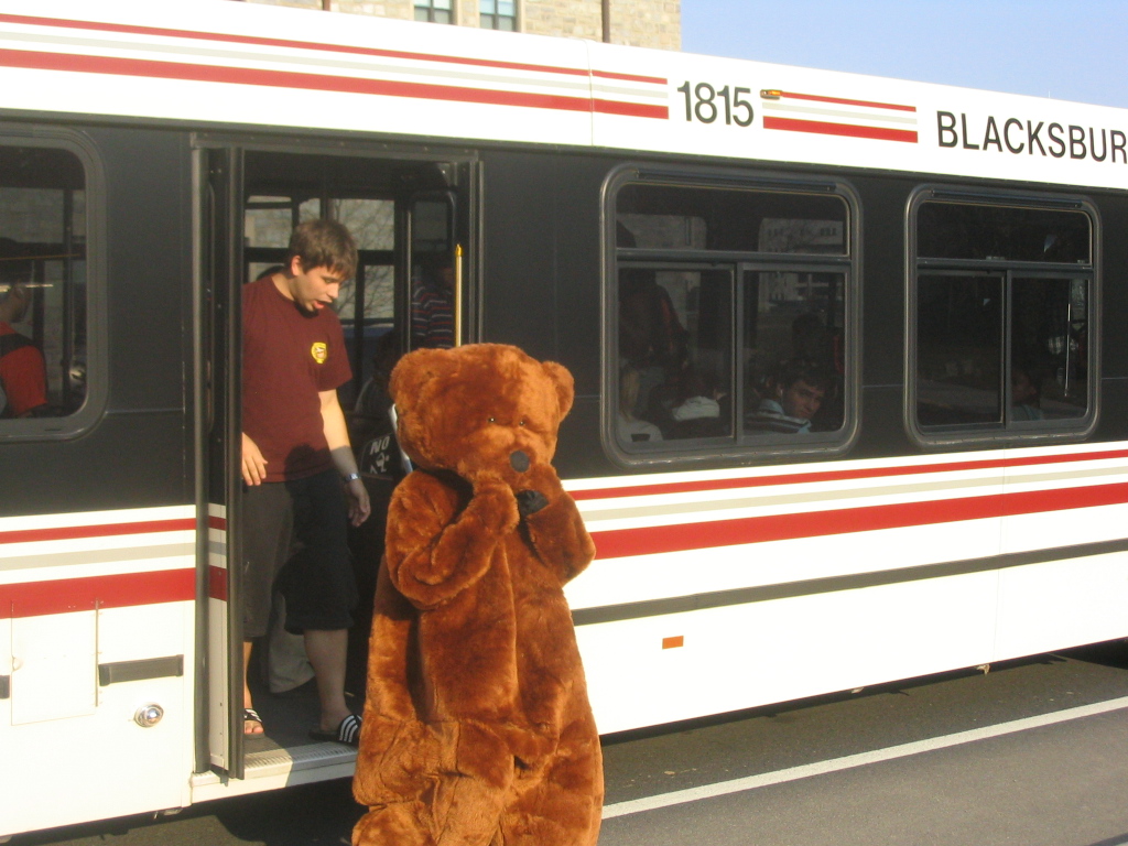 | Yes, the University Mall Shuttle is free to anybody with a Virginia Tech ID... even a bear. Like the gray bars at the bottom of this picture? Well, my camera has recently been fixed (as of June 2006) so this kind of issue should be a thing of the past. |