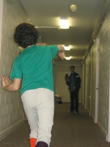 | Here, some of the team members warm up with some hall sports. |