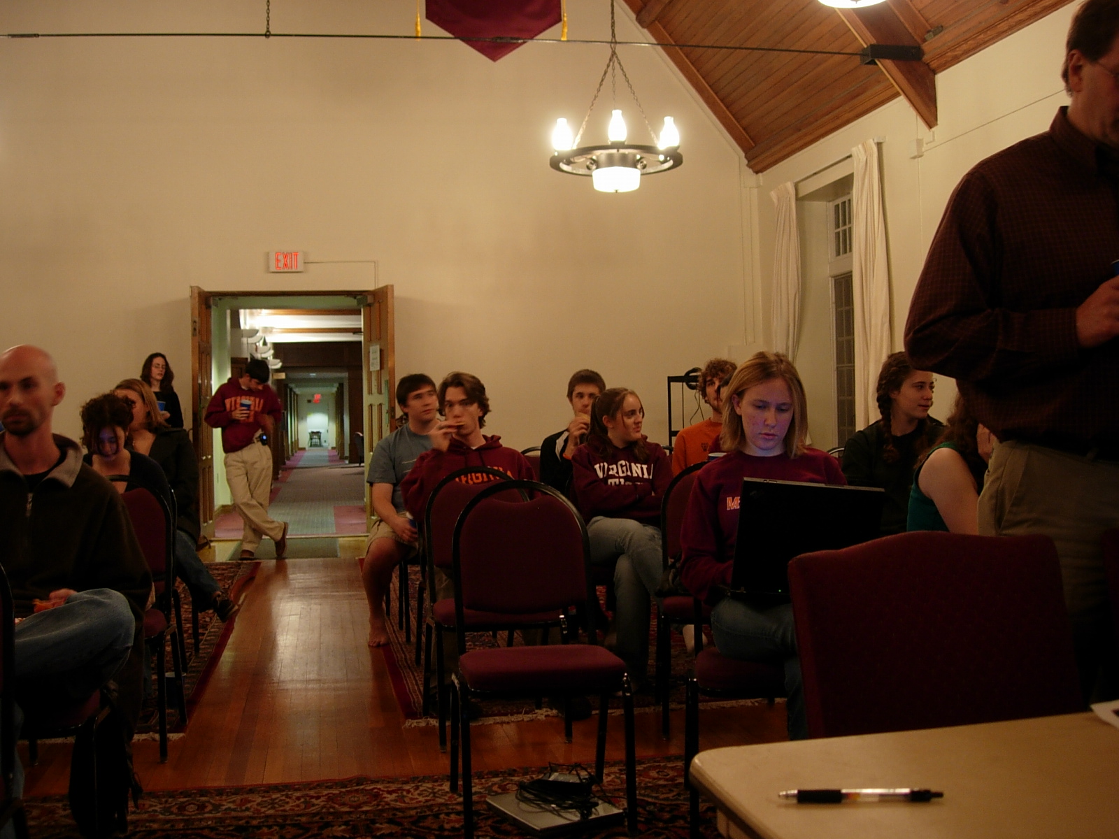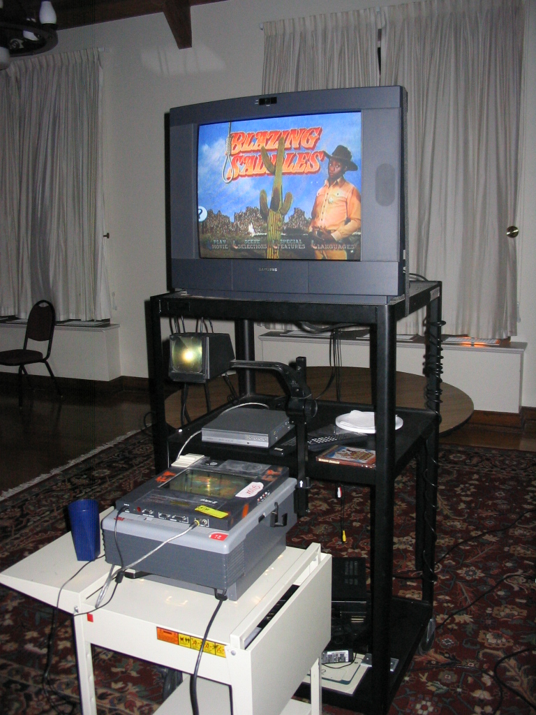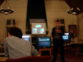Commencing Erin Rubin's Pictures, as I was too busy setting up the Family Feud game board and running the scoring system to take pictures. Look at those cables! Look at those computers! Look at that snazzy shirt! Look at that glazed over look in my eyes! (I had a cold.) |