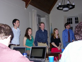 Following that presentation, we watched a slideshow of the various pictures set to appropriate music that Joanna had put together. You, too can watch it! It's awesome. Just follow this link! Oh, right. And then the two communities put aside their differences and gathered around Honors Director Jack Dudley for a tremendous group photo. |