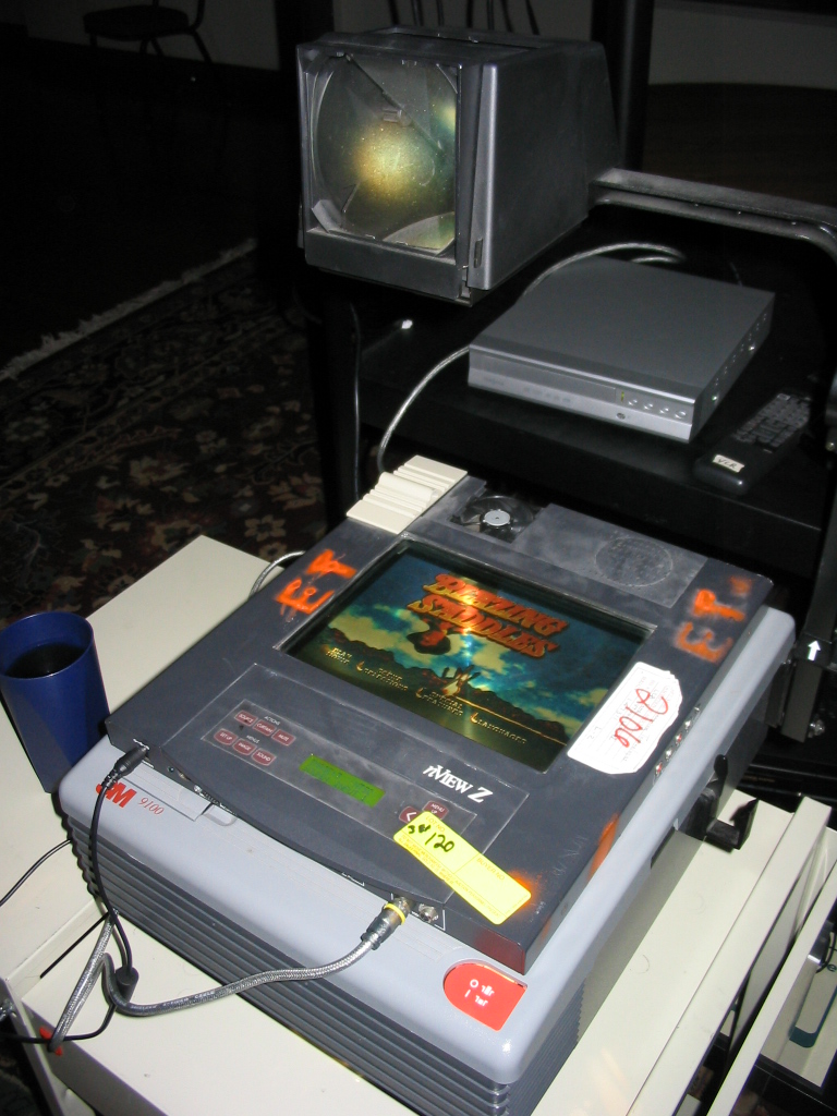 | Hey everybody, look at what I bought in the surplus auction! Technology straight out of 1996: an LCD panel projector! | ![]() |