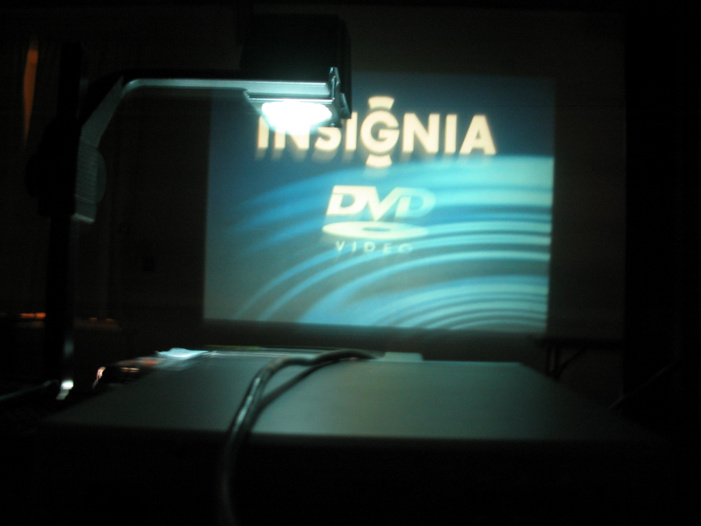 I actually bought 3 of them in a lot. I sold one off, so now I wound up paying about $10 each. The unit is the black plastic thing with the orange "ET" painted on it twice. It has a transparent window containing a liquid crystal display, and when it is placed on a really bright light (like this overhead projector), the image is illuminated and in this case projected onto a wall. Assuming the room is dark enough, that is. | |