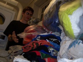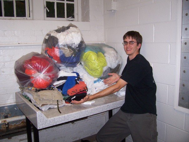 For some reason, a few freshmen are not at all punctual with removing their laundry from the laundry room in the basement of the building. So a few of us decided to go downstairs and take some pictures for the purpose of ridiculing them on the email listserv. We got lazy and never sent the email, but the pictures remain. Here, I do my best Vanna White to show off the fabulous laundry!
