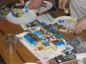 Look closely at this cake: see how it says "RU '06" on it? Well, the RAs got this cake on sale... some Radford graduates forgot to pick it up on time. | |
