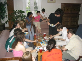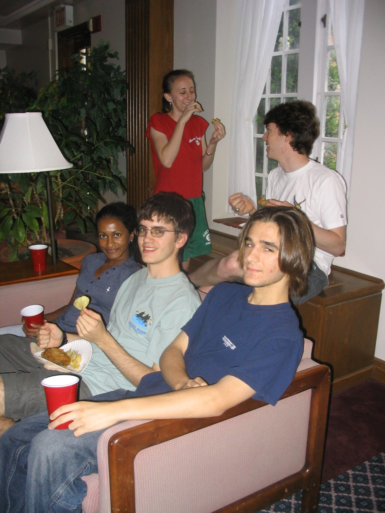 [The obligatory semi-candid picture with Peter in it.] Ohh, Sanda graduated! How sad. But Kevin (and Brad... and the out of frame Jeremy) will still be here next semester, ready to make me realize just how little math I know. | |
