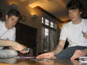 | And Rick is (finally) moving out of the building! MacGyverthons just won't be the same anymore. Oh well. Here, he and his best man (for real - Rick is getting married in January) Brad play some mean spades. | ![]() |