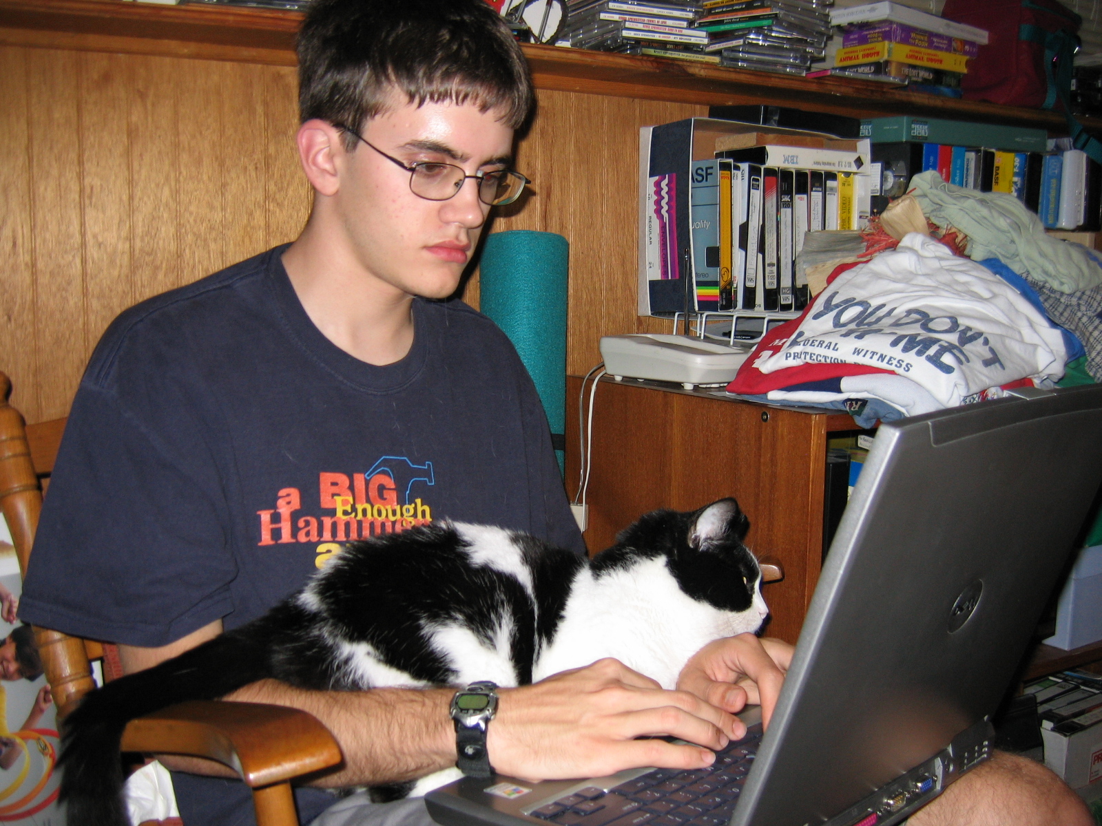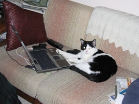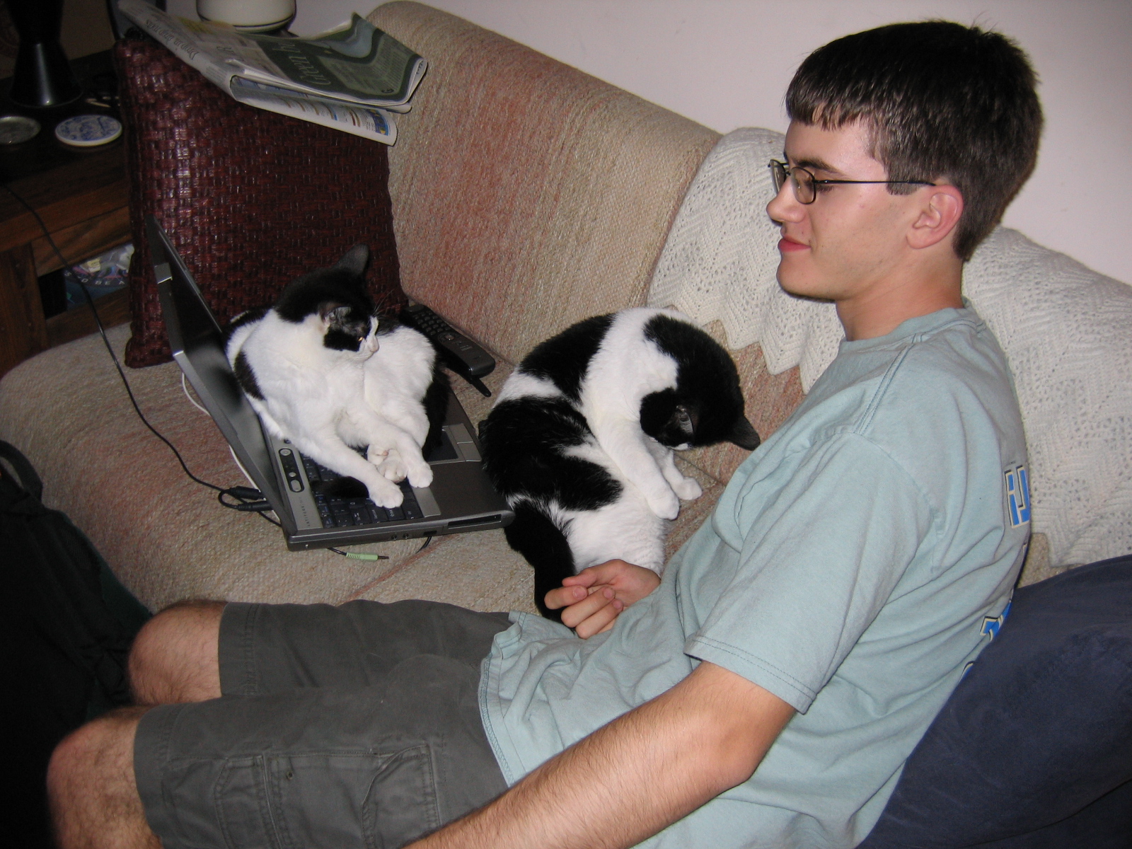 In fact, check out these pictures of me right now... or, at least when I was writing this. It's as though I can't get away from these cats. Or maybe my laptop is just a cat magnet. | |