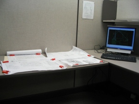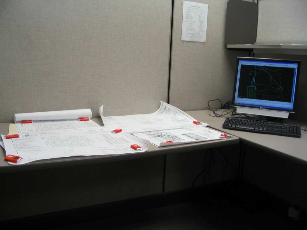 But then one day, as I was coming back from lunch, one of the IT guys mentionned casually to me, "So I hear that they're kicking you out." "WHA...?" I replied. Long story short, a new full time person was moving into the department, and as I would only be there for another month or so, they decided to make me a "drifter." Fortunately for me, this was also the same day that our department head was moving to Florida, so my temporary location is... the Site Planning and Engineering team leader's office. That is, until they hire somebody new. Which won't be any time soon. |