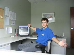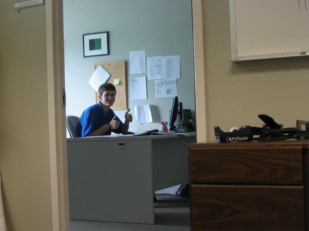 So I finally broke down and got a job this summer. No slacking, no summer camp - everything's different. Fortunately, everybody there's fairly casual and rather "interesting." Here I am working hard... or hardly working. Anyway, I'm working at a prominent central Virginia civil engineering consulting firm in the Site Planning and Engineering division. | |