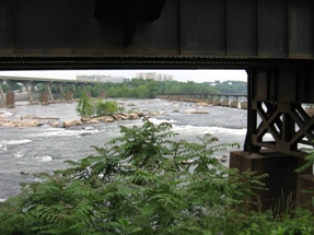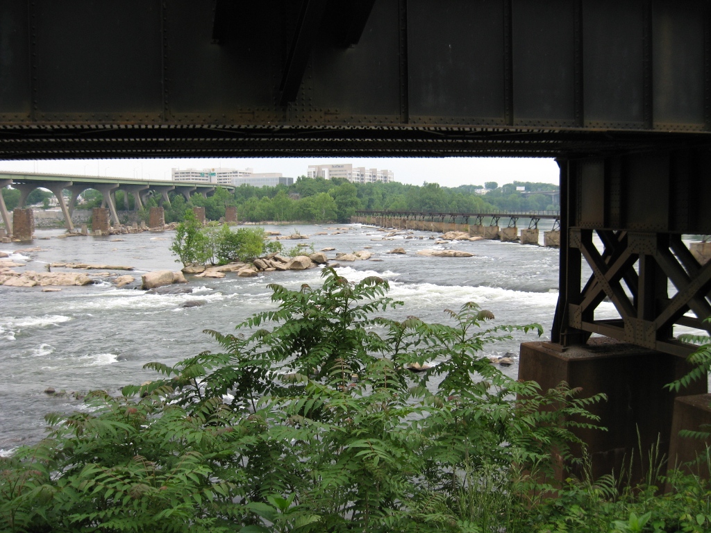 ...which isn't much of an island, as it is only separated by a man-made canal to get around the fall line. Hence the class V rapids about a mile upstream. | |