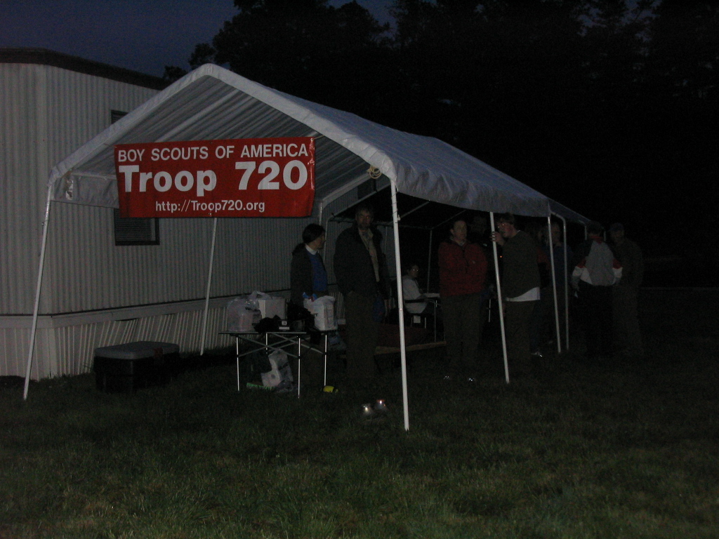 Then, about a week later, I helped the troop with their volunteer efforts at another cancer fundraising events. Here is the troop's setup, featuring our (relatively) new carport-esque awning. We don't need no stinkin' tents! Instead, we brought camp chairs and a whole slew of blankets. |