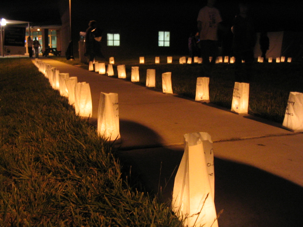 | The event organizers placed these 32 VT memorial luminaria. | ![]() |