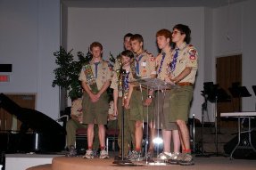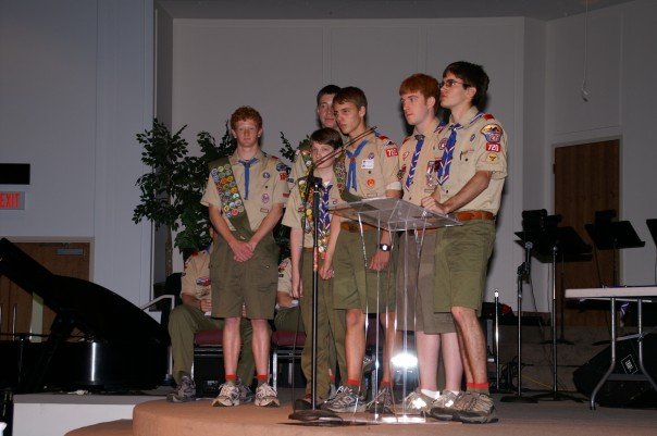 So... I helped out several Eagle Scout Courts of Honor over the summer. This one was for two people. Congratulations, Darin and Scott. [Repeat two more times for Colin and Shaun].