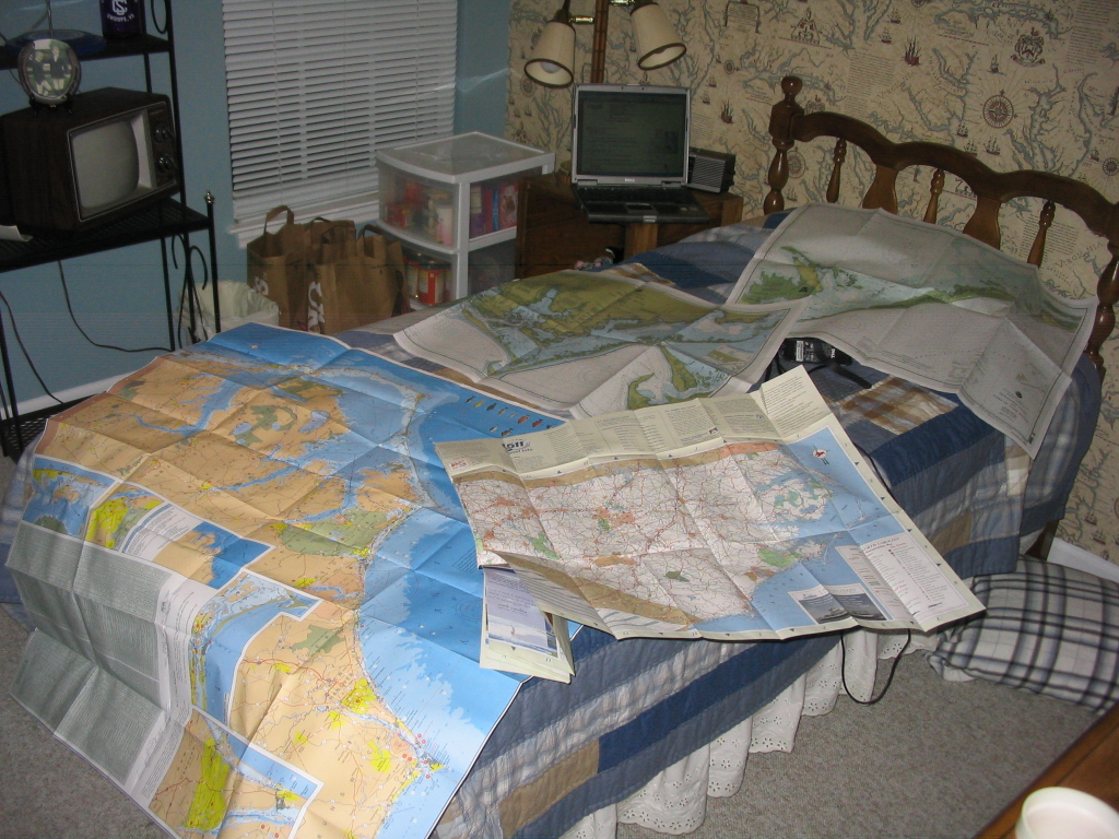 They decided for some reason to make me the crew leader. So here's my room at my mom's place, covered in maps. I really quite enjoy cartography.